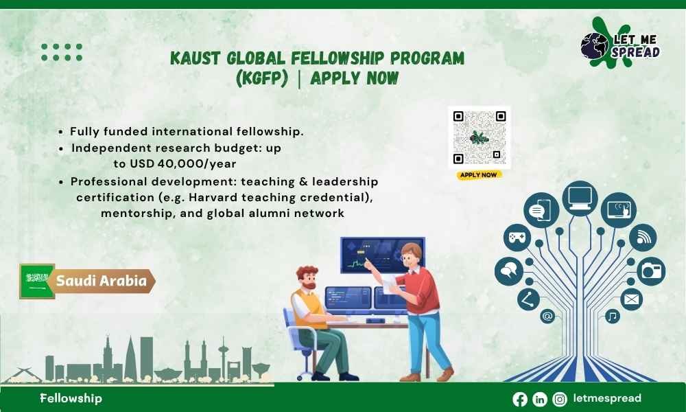 Are you an ambitious early-career researcher ready to lead independent science in a cutting-edge environment? The KAUST Global Fellowship Program (KGFP) offers a fully funded, three-year postdoctoral fellowship at King Abdullah University of Science and Technology. Three key reasons to apply: generous USD 75,000 annual stipend, USD 40,000 research budget, and state-of-the-art labs across five strategic research pillars. Ideal for PhD graduates within four years seeking autonomy, mentorship, and global collaboration in fields like energy, environment, digital innovation, or health. A transformative opportunity to accelerate your research and impact.